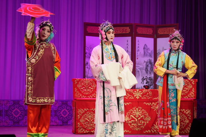 此次演出曲目为大型新编古装卫调花鼓戏《敫桂英》,由蚌埠医科大学卫调花鼓戏传习基地匠心打造,以经典传统剧目《打神告庙》为创作蓝本,巧妙融合创新元素,赋予这一古老故事新的生命力,生动展现了敫桂英与王魁之间那段扣人心弦的爱情悲剧。演员们凭借精湛的唱腔、细腻的念白、灵动的身段以及飘逸的长水袖,将角色内心演绎得淋漓尽致,以真挚的情感和独特的艺术视角,深深触动了在场观众的心弦,其中,敫桂英在海神庙前悲戚哭诉的精彩片段,更是将演出推向高潮,赢得了雷鸣般的掌声,经久不息。
