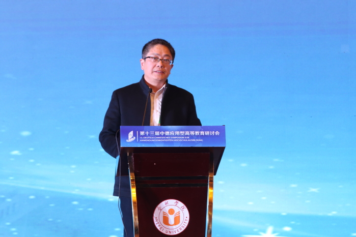 第二分论坛主题为产教融合与应用型人才培养,由滁州学院副校长李庆宏教授主持。奥斯纳布吕克应用科学大学米夏埃尔·舒勒教授、常熟理工学院顾永安教授、奥斯纳布吕克应用科学大学托马斯·霍夫曼教授和中国电科集团南京五十五所技术开发有限公司校企合作中心总经理、山东省产业教授许建军分别进行专题报告。
