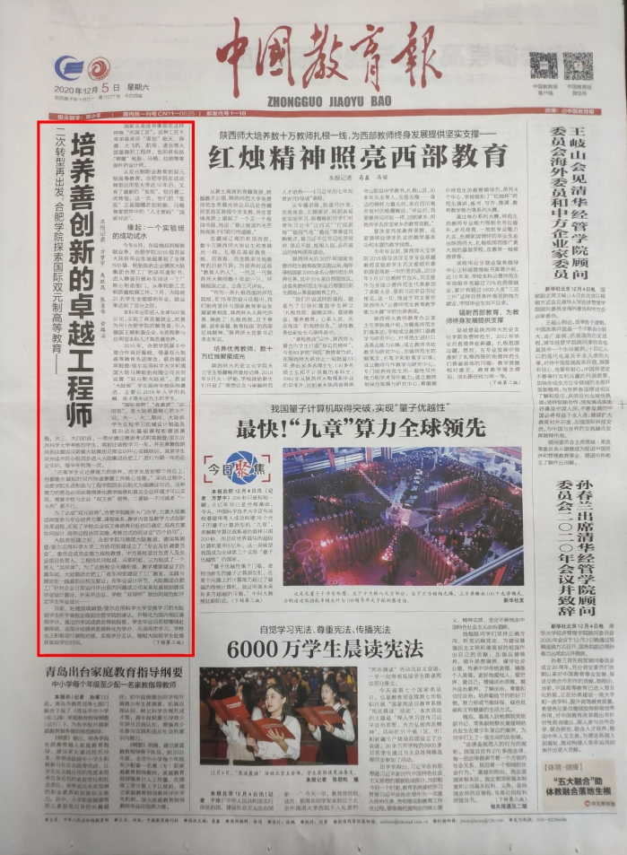 引言:12月5日,《中国教育报》头版头条报道了我校国际双元制高等教育。