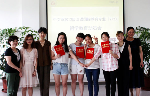 近期,我校中国语言文学系2013级汉语国际教育专业“2+2”项目班学生已顺利完成国内两年本科学习和韩方大学入学考试,将于8月底赴韩国翰林大学和韩南大学开始后两年的本科学习。据了解,该班多数同学在韩选择的专业多为同声传译、新闻播放和韩国语教育,也有部分同学选择了中韩贸易、经营学及国际关系学等专业。