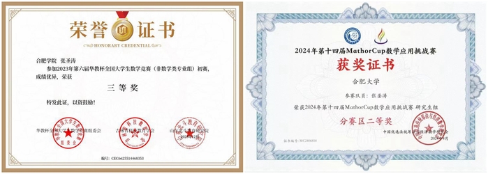 2024年4月,随着第十四届MathorCup数学应用挑战赛拉开序幕,张圣涛立刻踏上了早出晚归的备赛之路。他基于真实网络数据,利用数据驱动的智能PCI规划模型,以优化网络效率和用户满意度为目标,针对2067个小区进行智能化的PCI分配和优化的研究,利用遗传算法得到每一个子问题的最优解,从而实现了网络性能的最佳PCI分配。最终比赛历时4天,团队一路突出重围,以作品《基于遗传算法优化的多目标整数规划:小区PCI分配问题的研究》获得研究生组安徽赛区二等奖!在一次次比赛过程中,他不断积累与科研相关的大量实践经验,提升自身的专业素质,在青春的赛道上留下无悔的足迹。