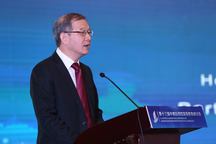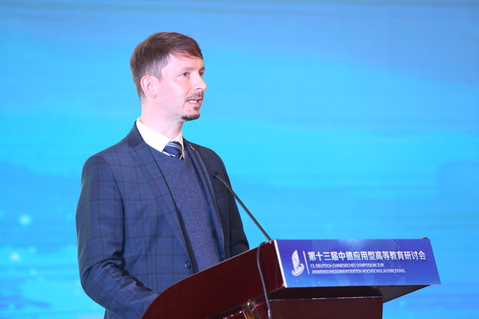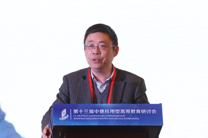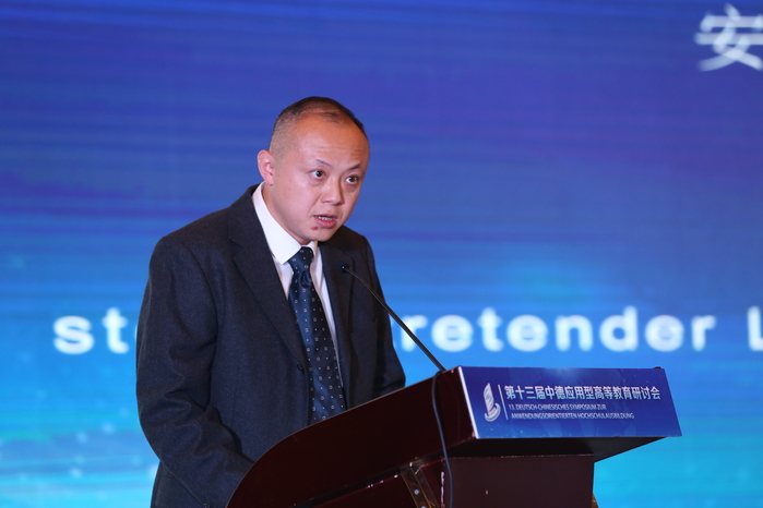 Nach der Eröffnungszeremonie teilten fünf Experten in der Grundsatzrede des Treffens ihre Gedanken zur anwendungsorientierten Hochschulbildung auf der Grundlage ihrer eigenen Forschungsbereiche mit. Ding Yongjian, Vizepräsident der Fachhochschule Magdeburg, stellte die „Perspektiven der chinesisch-deutschen Hochschulzusammenarbeit in der neuen Situation und die Rolle der deutschen Fachhochschulen“ vor. Er sagte, dass die internationalen Beziehungen in hohem Maße von der wirtschaftlichen Zusammenarbeit abhängen. China und Deutschland haben eine facettenreiche und feldübergreifende Zusammenarbeit im wirtschaftlichen Bereich, die auch eine solide Grundlage für die chinesisch-deutsche Zusammenarbeit im Hochschulbereich bildet. In Zukunft werden die Zusammenarbeit und der Austausch zwischen chinesischen und deutschen Universitäten fortgesetzt und vertieft, um die Entwicklung und den Fortschritt der chinesischen und deutschen Bildung sowie die Win-Win-Zusammenarbeit gemeinsam zu fördern.