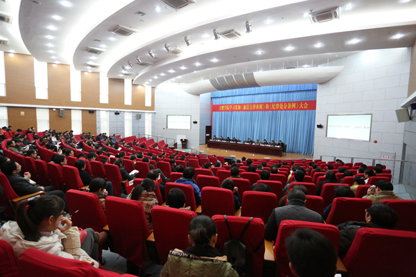 1月7日,学校在校图书馆报告厅召开大会,学习贯彻《中国共产党廉洁自律准则》和《中国共产党纪律处分条例》。校领导蔡敬民、张文兵、丁明、洪家友、陈秀、刘建中等出席会议,学校科级以上干部(含平台负责人)、各党总支(直属支部)委员参加了会议。